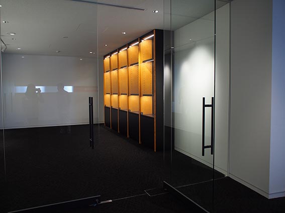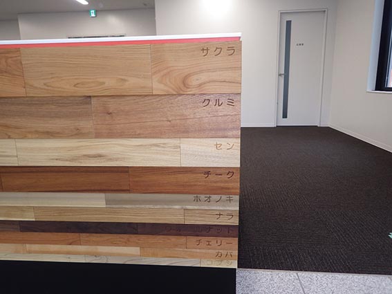 まず、ガラスに囲まれた1階の待合スペースに入ると2階と吹き抜けの構造になっていました。外から差し込む自然の光が心地よく感じられ、明るく開放的な印象を受けます。窓口のカウンターには、様々な種類の木を繋ぎ合わせたものを素材として使用しており、それぞれに木の名称が印字されていました。子供の目線の高さに設置されているので小さなお子さんも見て触って楽しめます。また、同じく1階には市民ギャラリーも併設されており、写真や絵の展示など市民の文化活動をサポートする場として無料でスペースを開放する予定で、これは全国的にも珍しいケースだそうです。移転オープンは10月9日です。
