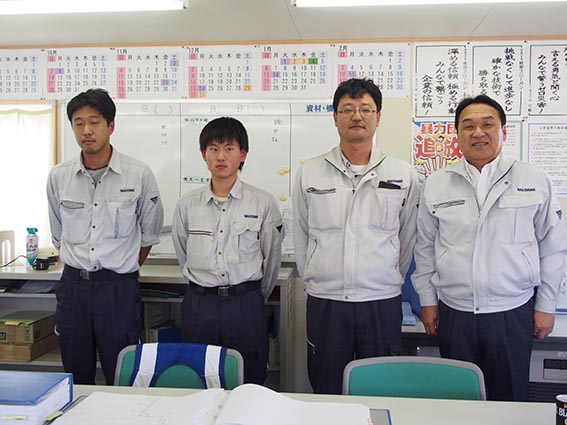 - 左から 中山社長、遠藤所長、松永さん、新入社員の平野さん