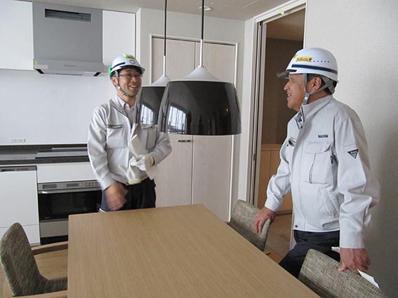 約2年半以上にわたっての施工となった当現場も、あと4ヶ月ほどで完成を迎えるとあって、中山社長も職員たちと苦労話やニセコの建設ラッシュの状況などに話を咲かせていました。