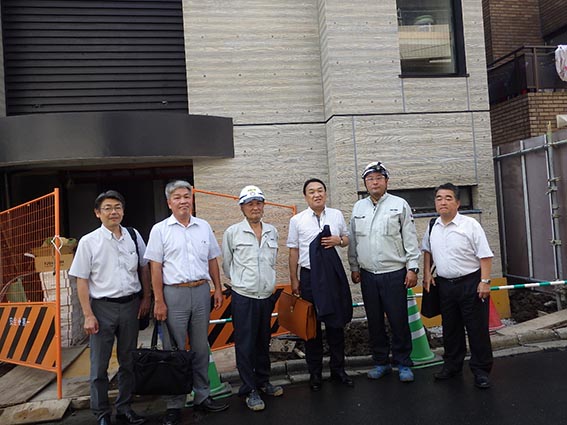 33℃を超える猛残暑の中、はじめに向かったのは武家屋敷の跡地で構成され、敷居の高いエリアの中心地に当たる南麻布2丁目の現場です。来月末の竣工へ向けラストスパート中とのこと。