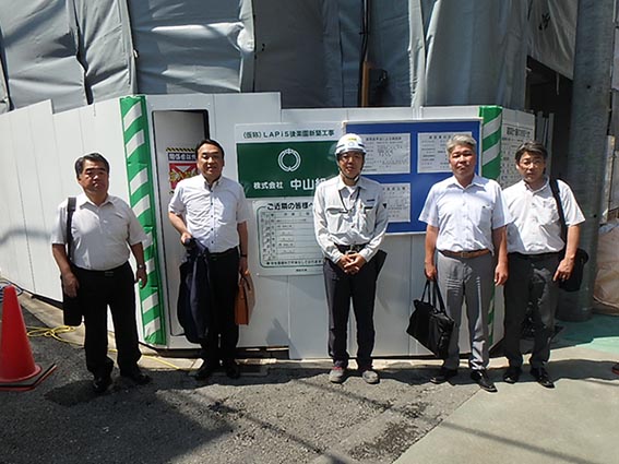 - 左より前田次長、木下部長、大塚課長、中山社長、佐藤係長、作田支店長