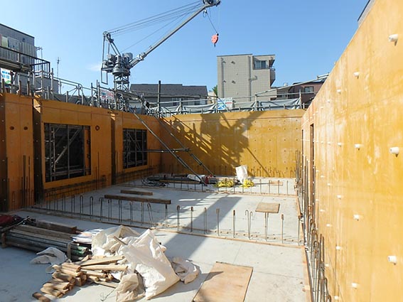 大塚君によると、着工前の近隣説明会の段階から近隣住民との話しの折り合いが付かず、結局、作業時間、土日の休業、騒音計の設置、建物名の変更など厳しい条件を飲んでの着工となったようです。現在は近隣住民とも良好な関係を構築できているようでした。