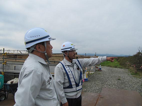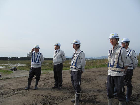 こちらでは2年前の東の里遊水地の現場に続き女性技術者として勤務する本庄さんと、新入社員の柴田さんにお会いする事が出来ました。女性技術者のいる現場訪問は初めてでしたが休憩室やトイレなど女性が働きやすい環境作りがされていて、本庄さんからは前回の経験を活かして今回はスムーズに仕事が出来ていますと頼もしい言葉を頂きました。