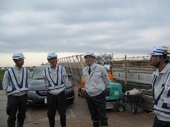河川発注の工事ですが内容がまるで農業工事のようで河川事務所の方も勝手が分からない部分が多く、能代谷さんからも色々提案させて頂き工事を進めていますとの事でした。また橋の施工経験のある小林さんから教えて頂く事も多く、大変な現場ですがやりがいがありとても勉強になりますとお話してくれました。