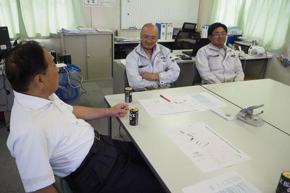 - 左から西股係長、佐々木さん、遠藤所長、中山社長