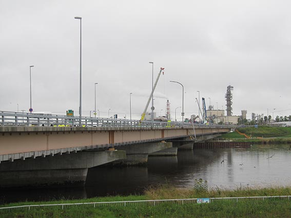 ここは、国道38号線釧路市内に架かる釧路大橋で、昨年11月に移転した当社の旧釧路営業所からほど近い所の現場でした。釧路町別保の高台橋の工事も一緒に施工中との事でしたが、今回は釧路大橋のみ訪問しました。