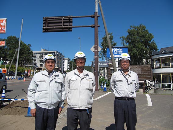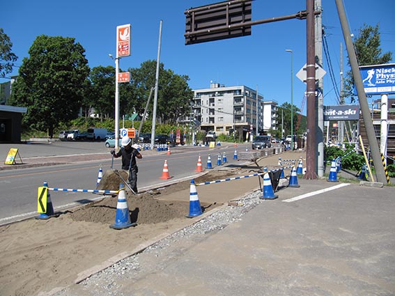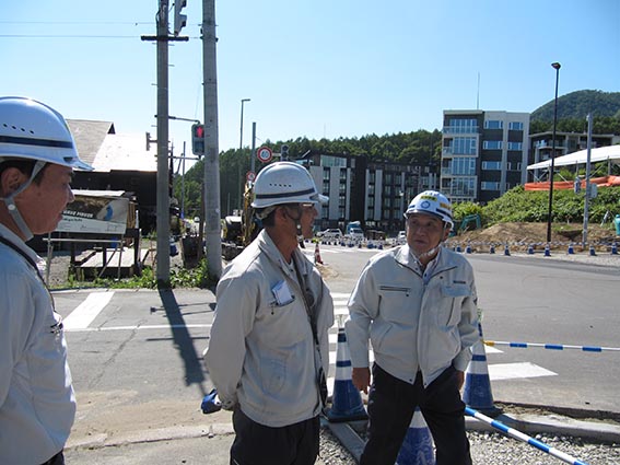 現場は人通りや交通量が多いことから安全面での注意や、国際観光都市ニセコにふさわしく景観を重視した計画変更が多い事、埋設物が多い事など大変苦労が多いようでした。