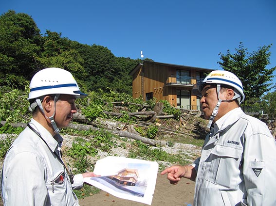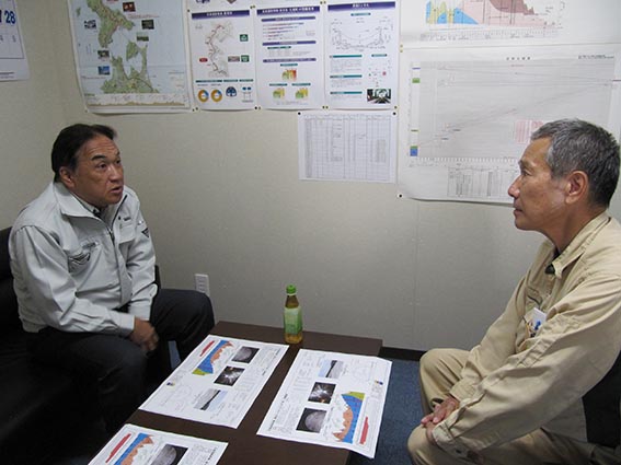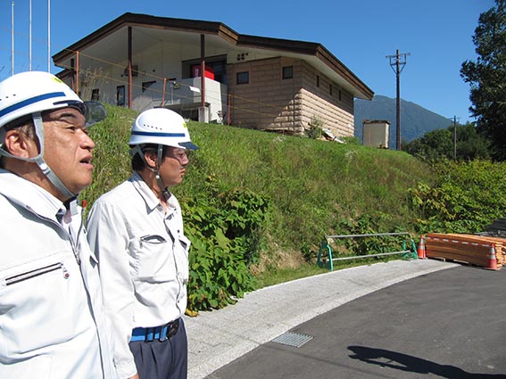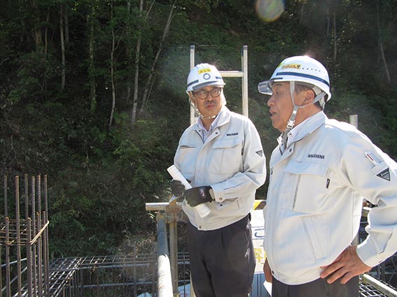 - 現場で松本所長から説明を受ける中山社長