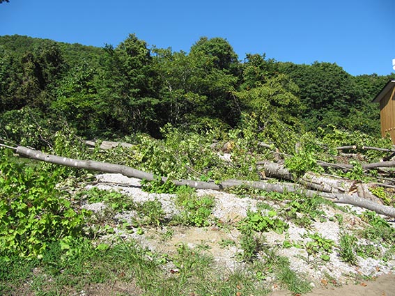 こちらは建築家・隈研吾さん監修の個人邸別荘になります。まだ工事に着手したばかりで現場は伐採を行っている段階でした。