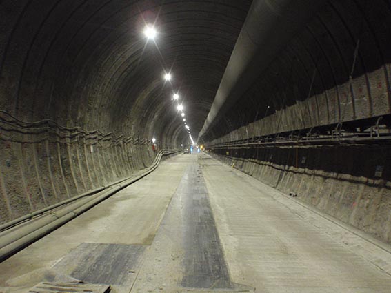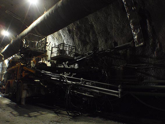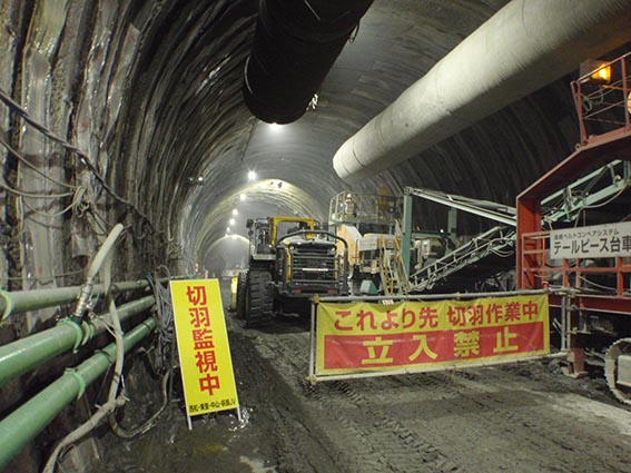 - 現場の様子(トンネルの断面積は72m2、幅10m弱)