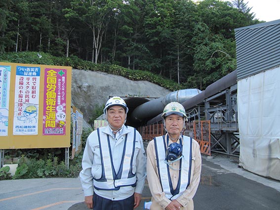 - 左から中山社長、川津さん(斜坑 坑口をバックに)