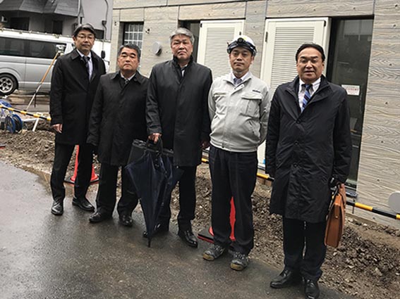 途中から現場に配属された田中裕介君の案内で現場内を見学し、話しを聞くと、近隣住民との約束事を守りながら、粛々と施工中で3月末日の引渡しへ向けラストスパートの状況とのことでした。