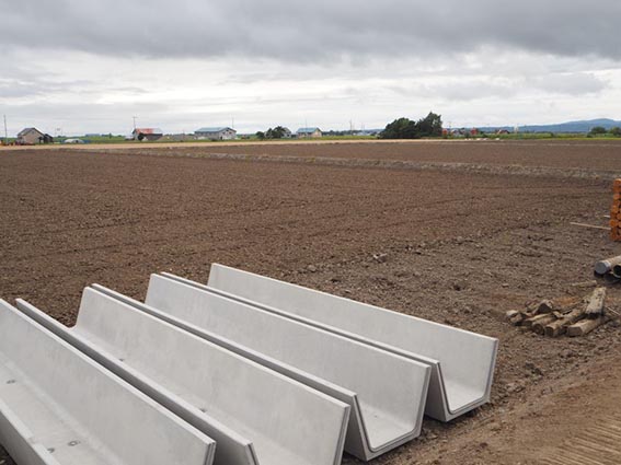 最後に訪れたのは「新篠津新湧ほ場」の現場です。こちらの現場は新湧地区の整地工、暗渠排水工、客土工を行っている工事です。既に4ヶ所の作業が終わっていて、9月中旬~末の稲刈りを待って作業に入られる箇所もあるとのことでした。この日に見せていただいた施工箇所では、訪問日の翌日から整地、暗渠の本格的な作業が行われるとのことでした。竣工まで無事故・無災害で作業されることを願っています。お忙しい中丁寧にご対応いただきありがとうございました。