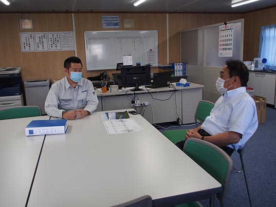 - 現場事務所にて説明を受ける中山社長