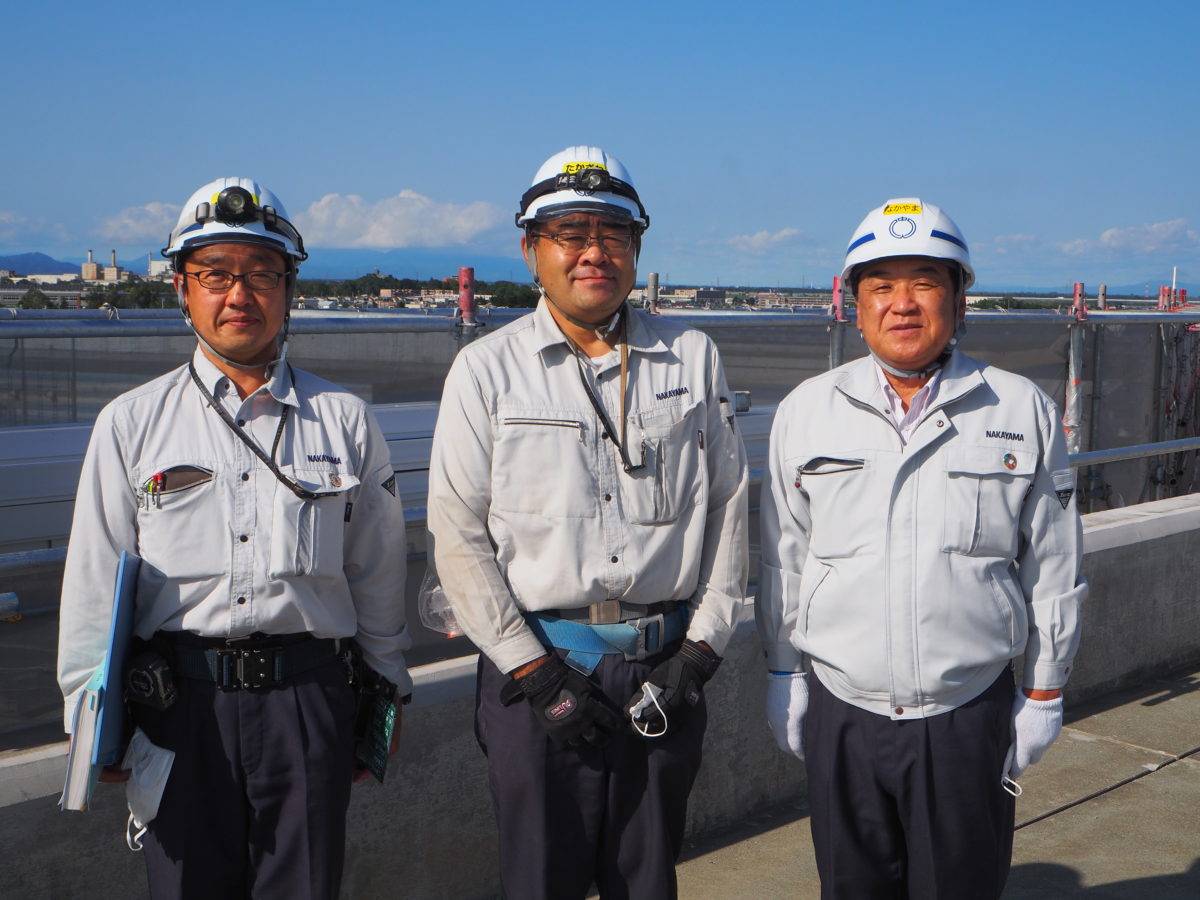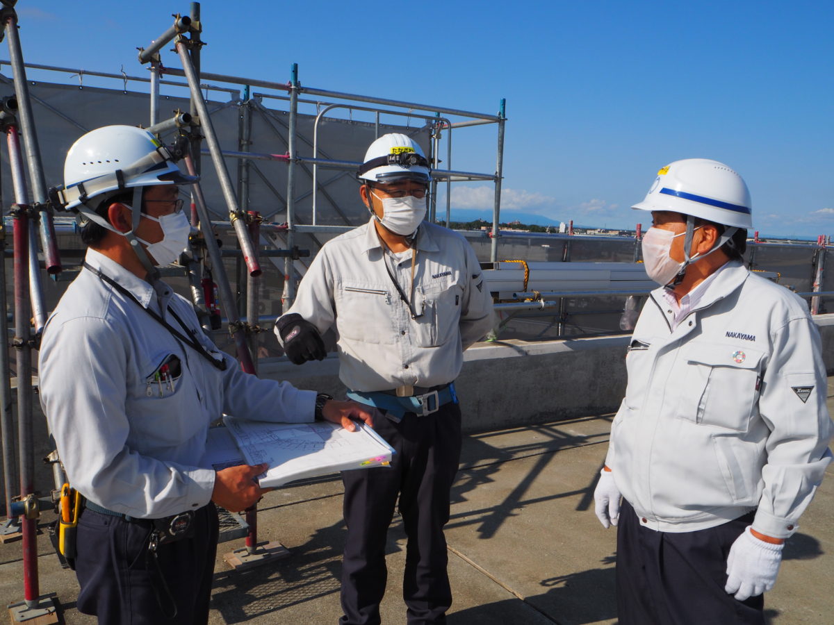 中山社長は、現場担当者の皆さんにここまでの頑張りに対する労いの言葉と、竣工に向けて安全に留意しながら施工していただくことを約束し、次の現場へと向かいました。