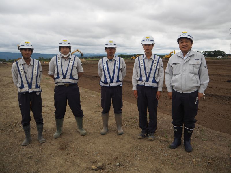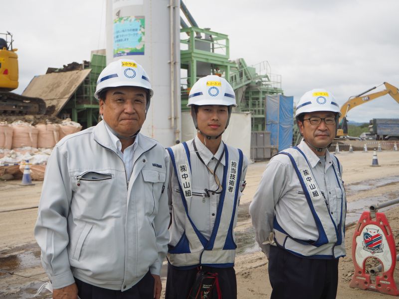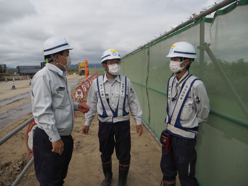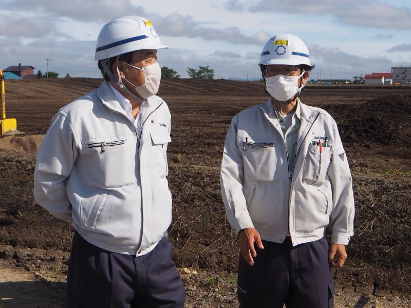 こちらの現場は泥炭地で地盤が緩く、工事の機械が入ると揺れを感じるため、近隣の人家に気を遣いながら作業を進められていたそうです。また風の強い地区でもあり、すぐ近くにある農家さんの土地に砂埃が止まないようにネットを張ったり、水を撒いたりして対策をしたとも話していただきました。