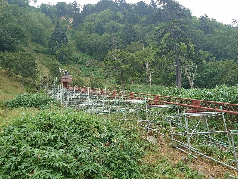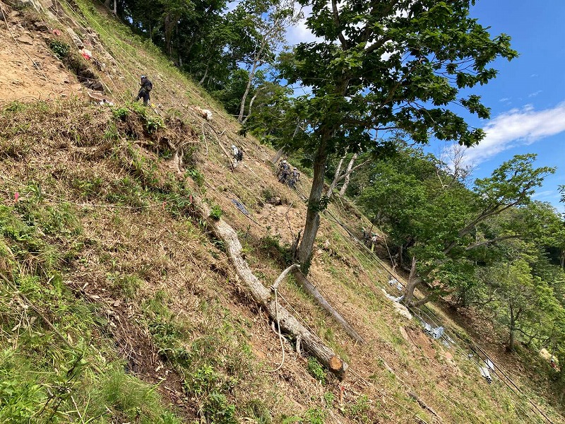 さすがに上部までは行きませんでしたが、まだアンカーを打っている途中で、終了後に防護柵を設置するそうです。熊も近くで出没しているようで、現場と熊に細心の注意を払って進めるようにお願いして現場を後にしました。