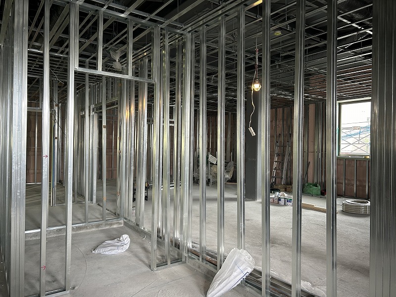 現在は壁や天井の下地が終了し、内装仕上工事に入る段階でした。外観は最後の仕上げに入っており、来週にも足場を解体する作業に取り掛かることができるとのことです。今後も安全に留意し竣工を迎えてほしいと思います。お忙しい中、丁寧に説明をしていただいた現場の方々本当にありがとうございました。