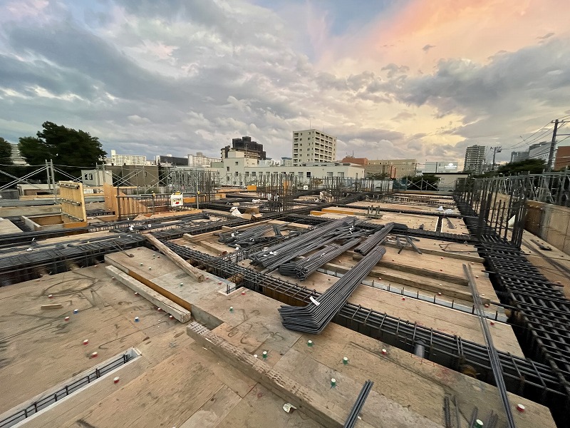 こちらの現場では、11階建ての分譲マンションの施工を行っています。訪問時には、ちょうどマンション1階の躯体工事の様子を見ることができました。今後は上の階の躯体工事を進めながら、下の階の仕上げ工事の施工を進めていきます。躯体工事がすべて終わるのは、最終的には来年の4月頃になるということでした。まだ1年ほどの工期があり、冬季期間の躯体工事もありますので、竣工の日まで無事故・無災害で施工されるようお願い致します。