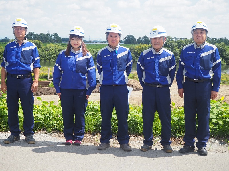 - 右から中山社長、尾崎さん、鉢呂さん、本庄さん、松田さん