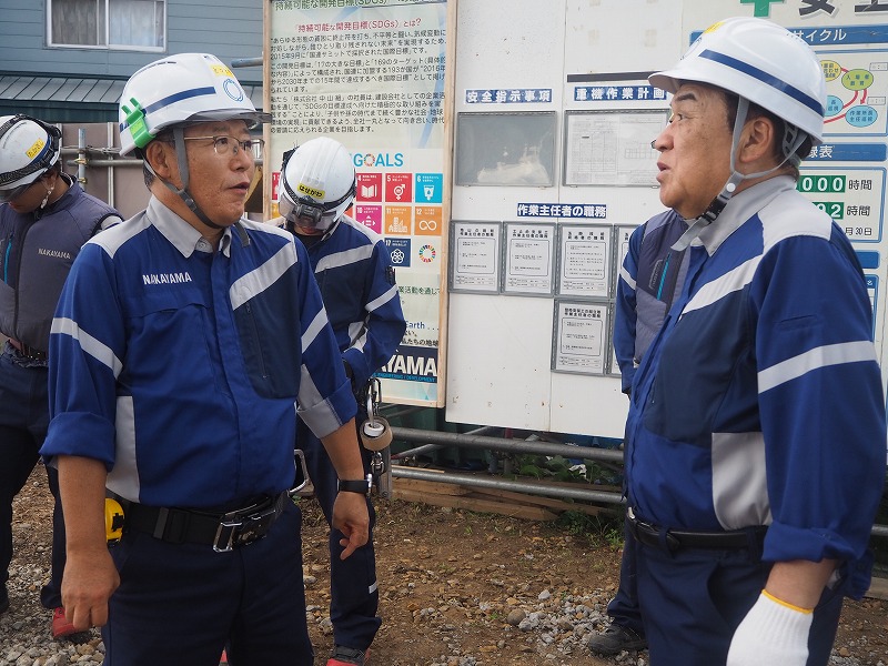 - 左から中山社長、現場代理人の對馬さん(大坪さんは夜勤のため昼間はお休みでした)