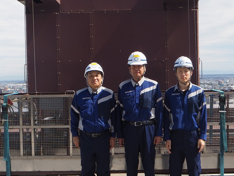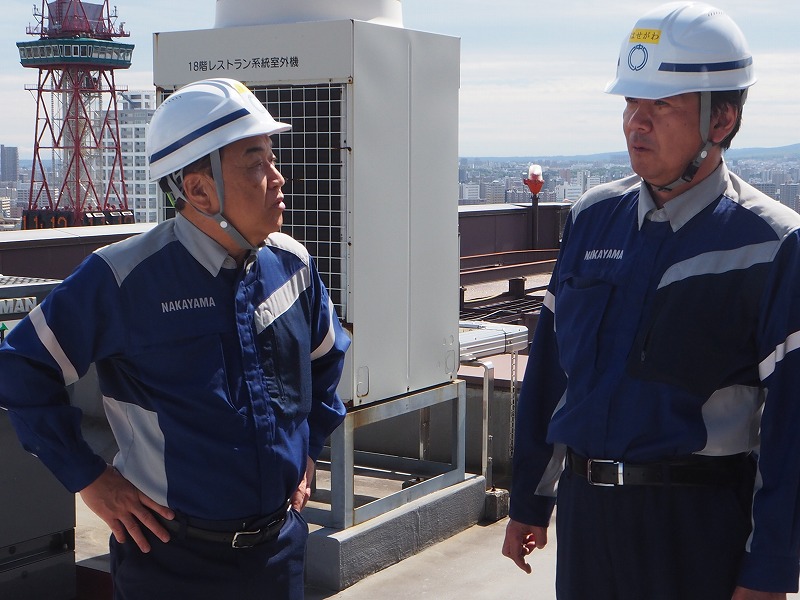 長谷川さんの案内で現場到着後エレベーターにて屋上に向かい現場の視察をしました。