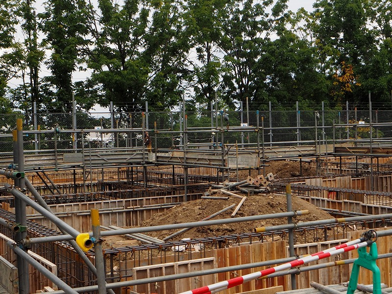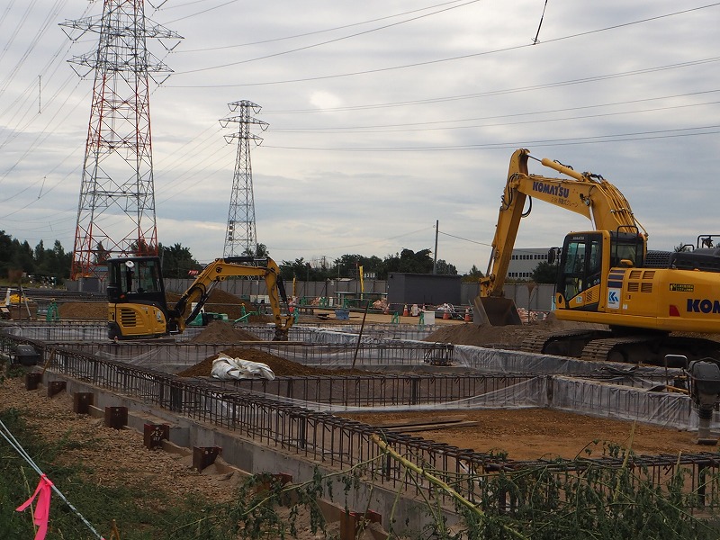 現在は、3つある内の2つ目の作業構台を建設中なのと、躯体を作るために掘削を行っており、ちょうど掘削深さの半分である10mほどを掘り進めているところです。