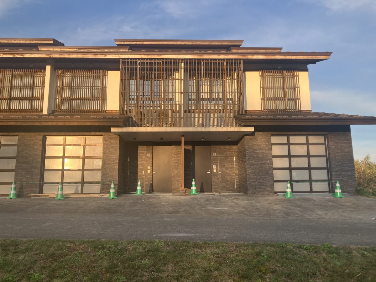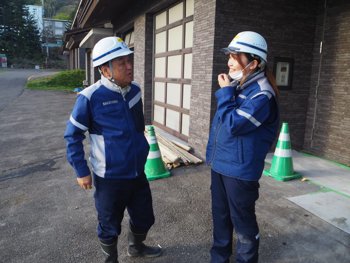 続いて訪問した現場は「NVカサラ温泉改修」の現場です。当現場では、家族向けコンドミニアムのガレージ部分を浴室に改修する工事を行っています。こちらのコンドミニアムは「カサラ・ニセコビレッジ・タウンハウス」という名称で、全8戸がタウンハウスのように並んでいます。日本の古き良き伝統的な住居を思わせる外観に加え、現代的なデザインの中に和の文化が調和した内装が特徴の建物です。近隣に駐車スペースがあることから、コンドミニアムの滞在者がガレージを利用する機会は少なく、有効活用の方法として考案されたのが浴室への改修で、本工事では全8戸のうち2戸を浴室へと改修し温泉を引き込みます。2戸の改修後は、利用客の反応を見ながら残り6戸の改修を判断するそうです。11月中旬の工期に向け順調に進んでいるとのことですが、体調には十分気を付けて無事に竣工を迎えていただきたいです。お忙しい中ご協力いただき、ありがとうございました。