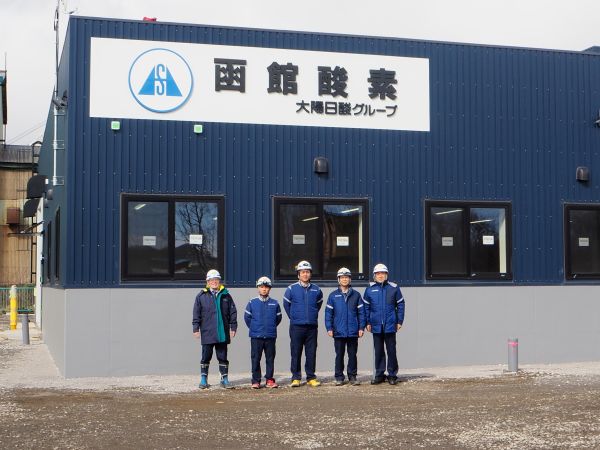 - 左から、室蘭営業所 菊地所長、竹谷さん、奥井さん、西本さん、中山社長