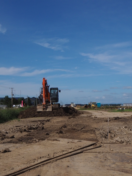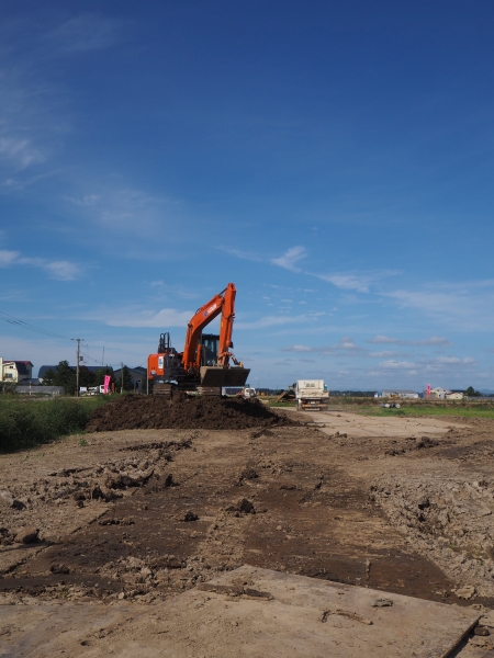 次に訪問したのは「長沼町新光西ほ場」の現場です。こちらの現場は、訪問時にはちょうど整地工が3分の2終わった状態で、今後は暗渠工に着手していくとのことでした。この夏は天候に恵まれない日が多く、なかなか現場を動かせないことも続いていたそうです。そのため、急いで作業されているとのことでした。