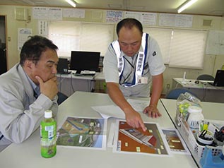 - 現場事務所で建物概要と施工内容を説明していただきました。