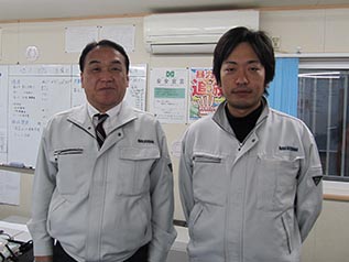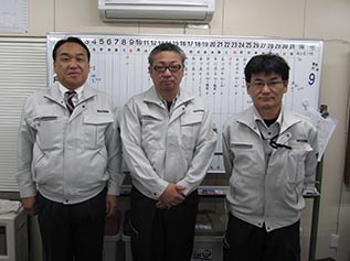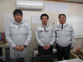 - 左から、千歳建設の竹森さん 佐藤さん 中山社長