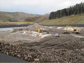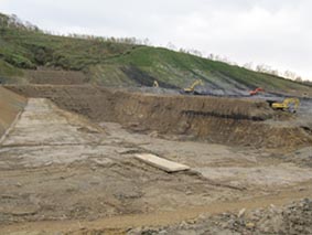 - 施工中の処分場、黒い部分が石炭です