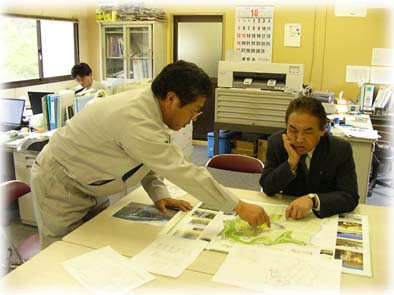 - 左より 荒井課長、竹内主任、中山社長