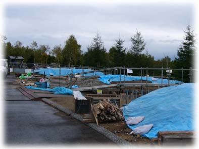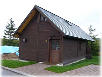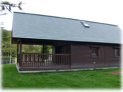 トイレはかなり広く作られていて、今はまだ外壁等は施工中でしたが、完成すると周囲の自然に溶け込むようなものに仕上がるそうで、完成後にもう一度見てみたいものです。しかし、このトイレが使用できるのは、周囲の施設が全て整う3~4年後と言うことですので、是非その頃訪れてみて下さい。 コテージ新築工事は、オートキャンプ場内の施設で中山組では4棟を現在施工中です。 今回の建物とほとんど仕様が同じ建物を、昨年伊藤組土建さんが隣接する場所に施工され完成しており、それを見るとコテージもトイレと同様に景観を意識した色調で、自然の中でのんびりとアウトドア・ライフを楽しむには最高の環境で、近いうちに是非利用してみたいと思いましたが、こちらも周辺施設が整う2~3年後から利用が可能になるようでです。(完成済みの写真は昨年伊藤組土建さんで施工したものです)