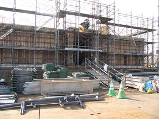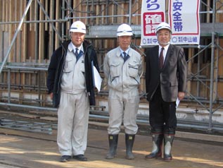 訪ねた日は、幸い好天でしたが、9月からの雨の多さ、天候不順が現場に影響を与えていると山田君から説明を受けました。竹垣、阿部両君と不二建設から派遣されている林君と一緒に写真を撮ってもらいました。工期が若干延びるようですが、安全管理、健康管理をお願いして次の現場へ向かいました。