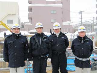 次に向かったのは、栄町にある分譲マンション新築工事の現場です。15階建て戸数54戸の分譲マンションで、地下鉄栄町駅徒歩4分、近くに大きなスーパーもあり利便性の大変よいところにあります。周辺にはすでに何棟かマンションが建っており、この辺はマンション建設が盛んになっているようです。早速現場に向かい、十鳥所長から現場の状況を説明していただきました。訪問時は基礎部分の施工中ということで、凍えそうな冷たい強風の中でしたが、作業員の方は黙々と作業されていました。すぐ隣には保育園があり、子供たちのお昼寝時間の12時半には工事を止めているのだそうです。建物が完成したら、ぜひまた見学させていただきたいです。まだまだ寒さは厳しいですが、皆さん体調にはご注意され頑張って下さい。ご協力ありがとうございました。
