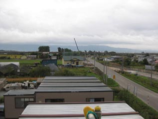 この現場は、1件目の工事が新幹線関連工事の中でも早い時期に着工した工事現場のためか、周辺自治体や団体、学校等の現場見学が非常に多く、平均すると3回/週のペースであるため、天候に関係なく現場見学・説明が出来るようにと、見学用の足場の上にユニットハウスを設置したそうです。