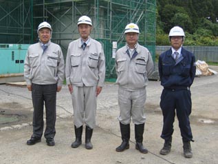 - 左から、中山社長、浦課長、松田係長、協力会社-西岡総業の岩谷さん
