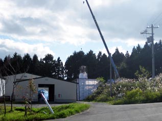 工事は、建屋及び煙突を密閉し、建屋内部や煙突・焼却炉の内部を洗浄・除染した後に、全て解体するもので、当日は内部を除染中だった為、建屋内には入れませんでした。 工期は来年2月20日ですが、解体した廃材のダイオキシン濃度が基準値以下でなければ現場外に搬出できない事と、その濃度測定に時間を要する為、年内に全ての解体を終了させなければならないので、雪は降って欲しくないと、話してました。