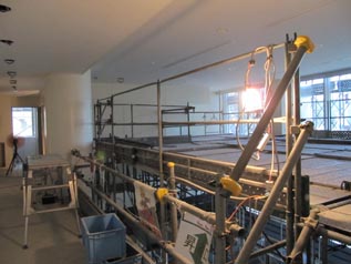 近々幼稚園の園児たちが描いた絵を南側仮囲いに貼るそうです。現場は開発局や国交省の見学会が行われたり、札幌工業高校の生徒80名近くが見学に来るなど、見学者の対応にも追われているようでした。
