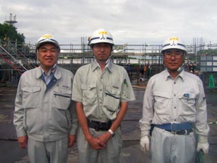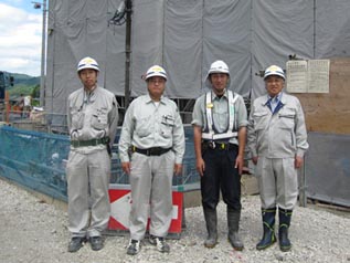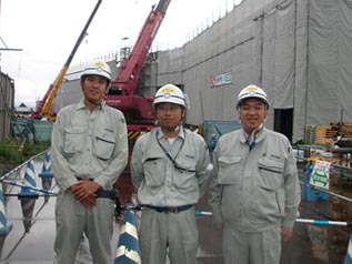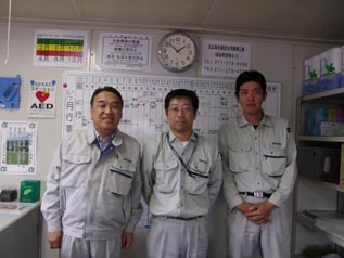 - 現場事務所にて 左から中山社長、堀田工事課長、阿部主任