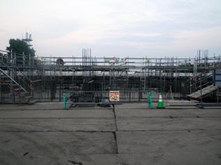 消防署という事で、消防車の高さや排気ガス装置の設置に合わせ、1Fの階高が5.2メートル、2Fは3.9メートルもあり、ホース乾燥塔(サイレン設備階)は19メートルの高さになるそうです。その為、建物内部でも足場を組んでの作業となるとの事でした。また外構工事でL型擁壁工や盛土工などの宅地造成工事があり、まるで土木現場にいるようですと塚田さんが話してくれました。まだまだ暑い日が続きます。体調には十分注意し頑張って下さい。
