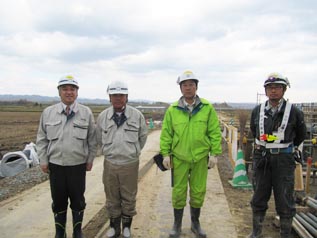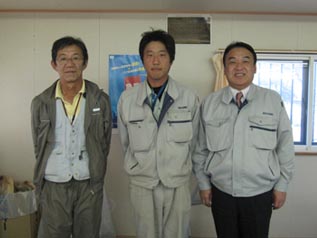 - 左から中山社長、志田課長、後藤さん(遠藤組) 小田桐主任