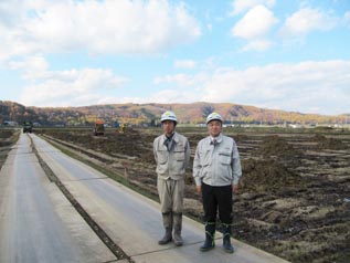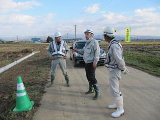 初めに向かったのは雨竜郡沼田町にある現場です。現場事務所の近くにさしかかると所長の志田課長が道路まで出てきて迎えてくれました。