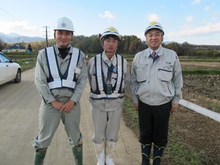 - 左から一安さん(遠藤組)、前田係員、中山社長