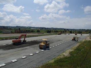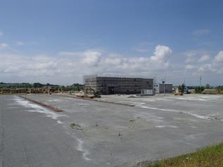 当日現場では、建築では倉庫外部の足場解体、倉庫内の電気・設備の配管・配線、床左官仕上げを施工中で、土木ではアスファルト舗装部の路床掘削・外周フェンス基礎設置を施工中との事でした。