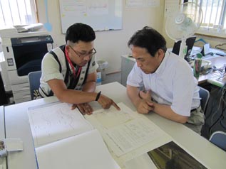 - 木嶋さんから現場の机上説明を受ける中山社長