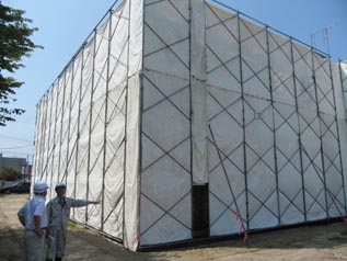その敷地の屋外には、敷鉄板、工事現場の事務所等で使用する仮設ハウス、水槽等の置場がそれぞれ出来るとの事です。倉庫の中には電動工具等が置かれます。