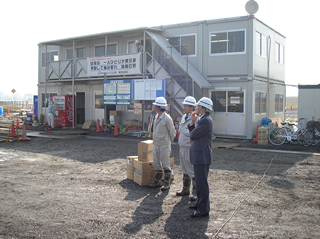 - 左から、川島主任、山口主任、 現場代理人の佐貫さん、中山社長、吉田部長